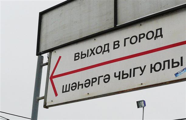 В Казань наш поезд прибыл 1 января в 9.30! На перроне нас встретила жизнерадостная табличка "выход в город" на татарском языке.