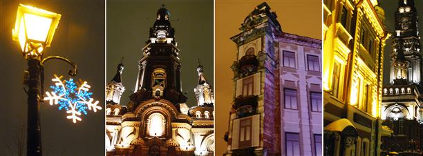 За это время небо стало черным, включили фонари и подсветку. Даже развалины на улице Баумана получили свою долю художественного света.