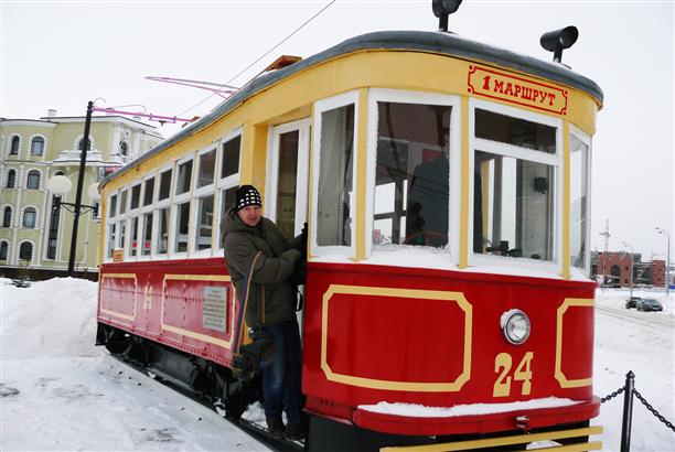 Суконная слобода хранит тайну трех трамваев. Они выстроились тут один за другим. И совсем не папье-маше - в каждый можно залезть. Этот, к примеру, настоящий трамвай серии «Х» - такие колесили по Казани в довоенное время.