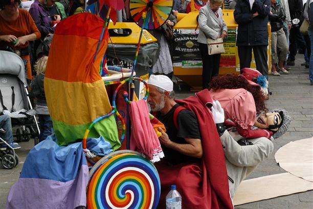 В Генте великое множество уличных музыкантов и актеров. Играют на всем - даже балалаечника встретили! Но самым необычным из увиденного было танго двух ростовых кукол, которыми управлял один танцор. И настолько точными и красивыми были движения, что реально забывалось, что это шоу одного человека, прыгающего на четвереньках :)
