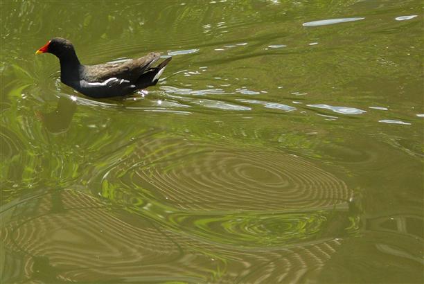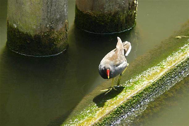 А потом на реке Лис мы увидели странную черную птицу. Совсем не утка! Какой-то плавающий инвалид. Передвигалась рывками, с большим усилием... Потом вышла на сушу, отряхнула свои куриные лапы и, воровато оглядываясь, устроилась загорать на солнышке :) Смешная.