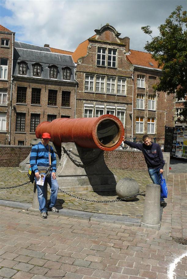А это вовсе не большой красный калейдоскоп, это знаменитая гентская пушка Безумная Грета (1450 года рождения). Ее длина 5 метров, калибр - до 65 см, а вес 18 тонн. Размеры и грохот Греты во время стрельбы вызывали невероятный ужас у горожан. После того, как пушка превратилась в городской памятник, она долгое время служила ночным убежищем для пьяниц :)