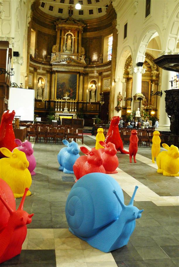 Все это арт-объекты авторства бельгийца William Sweetlove - одного из участников широко известного интернационального движения cracking art group. И это не просто стеб, это художественная мысль о противоречии между естественной жизнью и искусственной реальностью :) Где-то так.
