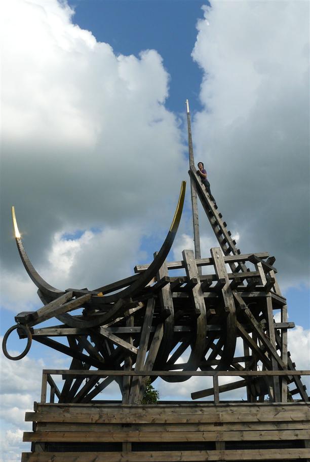 Позолоченный телец (2009 года рождения). И на него тоже можно забраться! Величественный, деревянный, точно древний корабль или Ноев ковчег, плывущий среди полей...