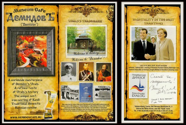 Внутри фотографировать было нельзя, поэтому я попросил рекламный буклет. Из него, а потом и со слов официанта, я узнал, что в 2010 году здесь проходила встреча моего тезки — президента Дмитрия Анатольевича Медведева и Ангелы Меркель.