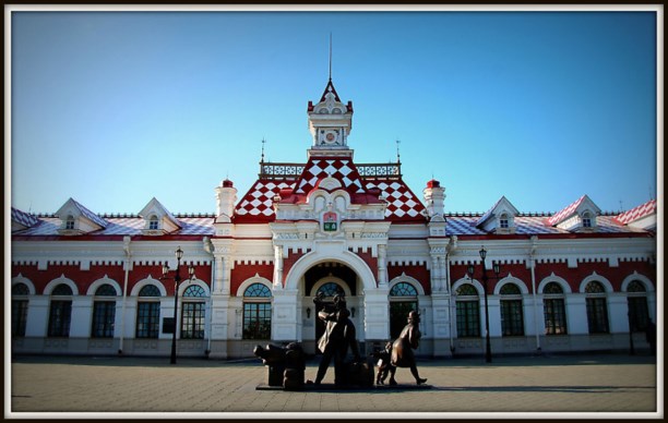 Удивительно любопытна и красива скульптурная композиция возле старого ж/д вокзала. Называется она "Памятник пассажирам".