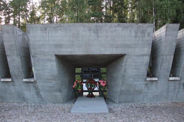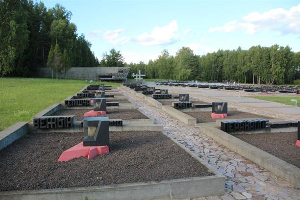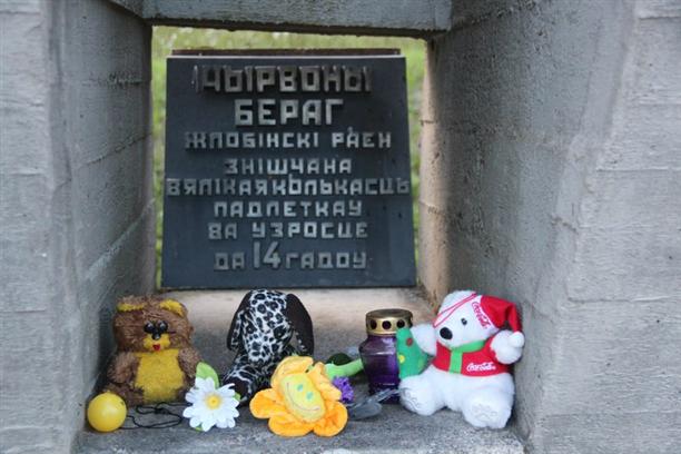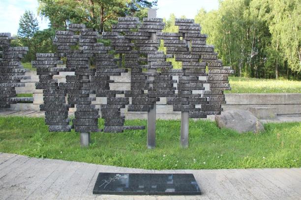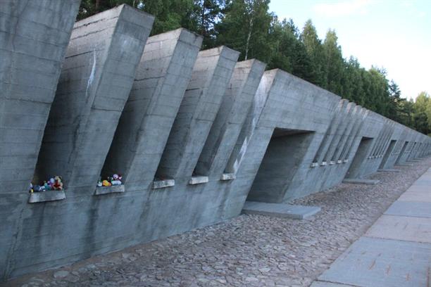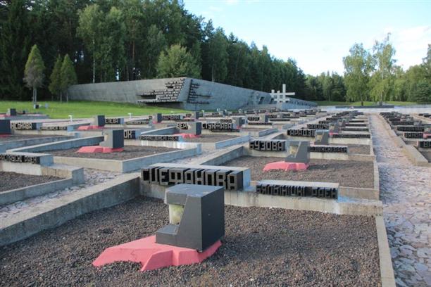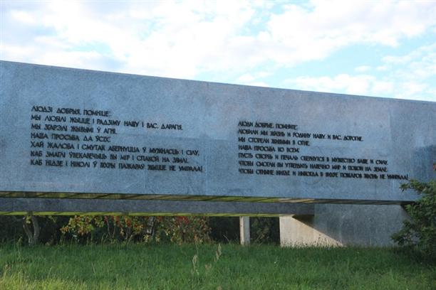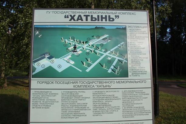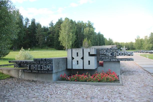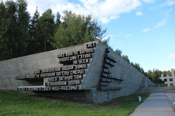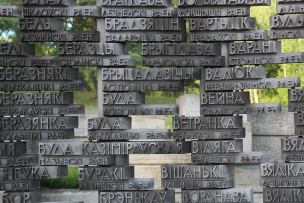 Рядом с Кладбищем деревень – Стена Скорби, в ней находятся мемориальные плиты с названием 66 крупнейших лагерей смерти и мест массовой гибели людей.
