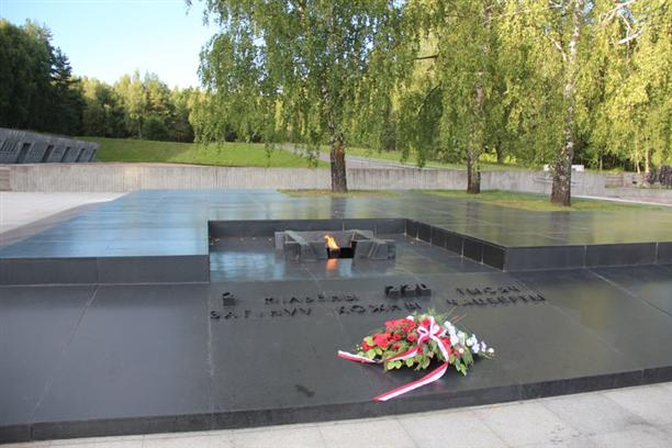 Завершает мемориал площадь Памяти, в центре которой растут 3 березы, символизирующие жизнь, на месте четвертой – Вечный огонь, символ погибших в годы войны жителей Беларуси.