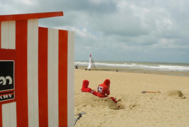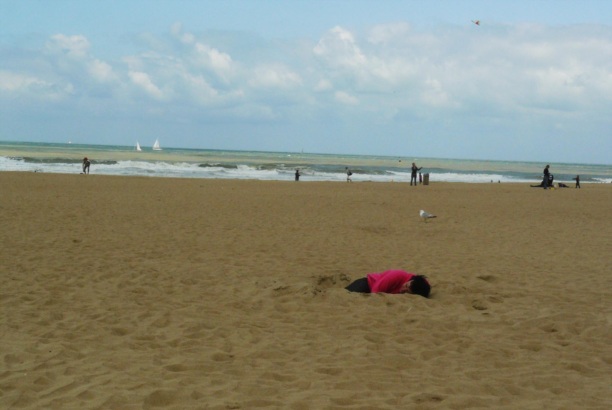 Есть еще один вариант. Совсем бюджетный. Покупаешь на набережной специальную лопатку, выкапываешь яму и все дела! :) В Остенде весь пляж изрыт! Вот такой самобытный отдых на берегу Северного моря. Вот такие непростые солнечные и воздушные ванны принимают европейцы.