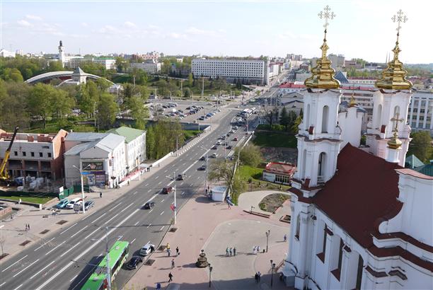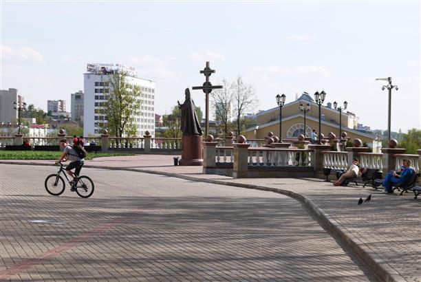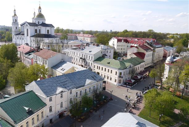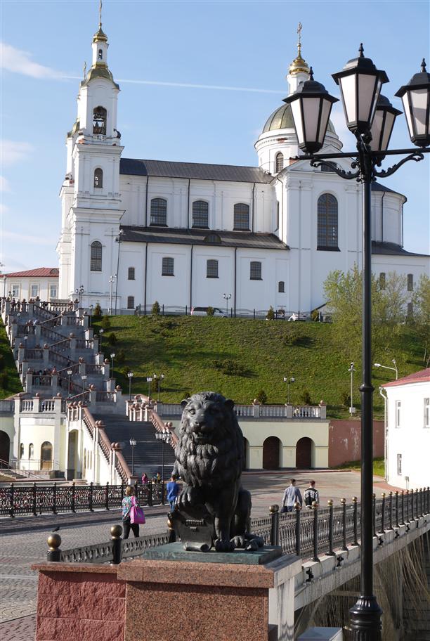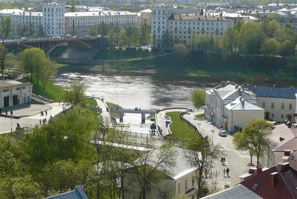 Вид открывается со смотровой площадки Успенского собора - того самого, который входит в основную тройку архитектурных шедевров Витебска. С благословения патриарха Московского Алексия Второго в 1998 году началась реконструкция православного Витебска. Ему собственно и памятник.