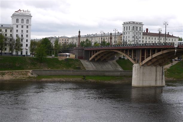 Переезжаем Кировский мост, перекинутый через Западную Двину...
