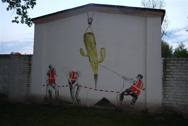 Покажу ещё одно, а остальное - в галерею. Несогласный кактус во дворах по адресу Московский проспект, 10. Заметьте, никаких гербов и флагов Витебска, городских достопримечательностей и царей :)) Стив Джобс мелькнул 25-м кадром в граффити с козой и в общем-то всё. Уличная живопись в Витебске свободна от властей и уважаема жителями. Ни одно граффити не закрашено и не испорчено.
