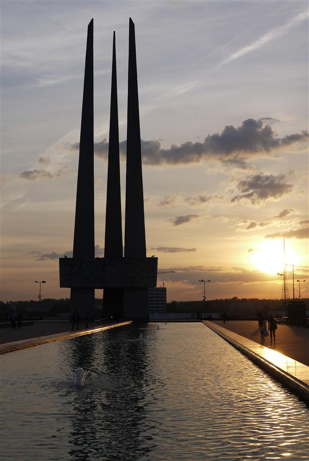 Три штыка на Площади Победы. Мемориал появился в 1974 году, в 2009-м его обновили, теперь это огромный комплекс, в котором продумана каждая деталь.