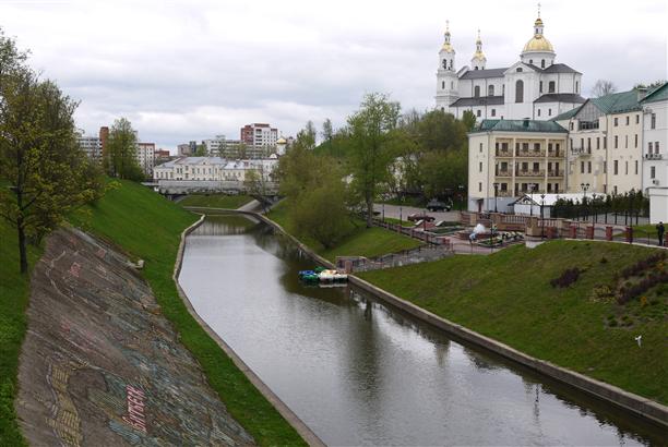 - Едем в братскую Белоруссию! Мы сразу решаем, что дорога не должна быть более 700 км в одну сторону (это гуманно!). В кастинге участвуют Витебск, Могилёв и Гомель. И….... побеждает Витебск, он же Biцебск! Город на трёх реках, с хитрым ландшафтом, красивым старым городом, интересным граффити и руинами древнего замка неподалёку :)
