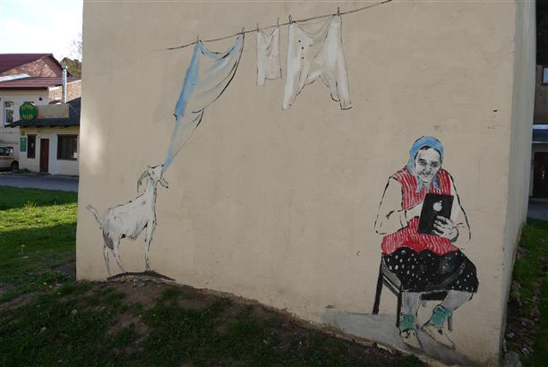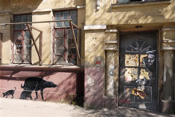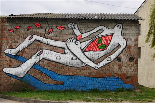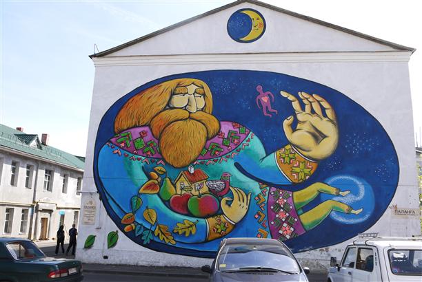 А напротив памятника - современная уличная живопись. И не могу сказать, что она здесь как-то не к месту... Ассоциативно и волшебно.