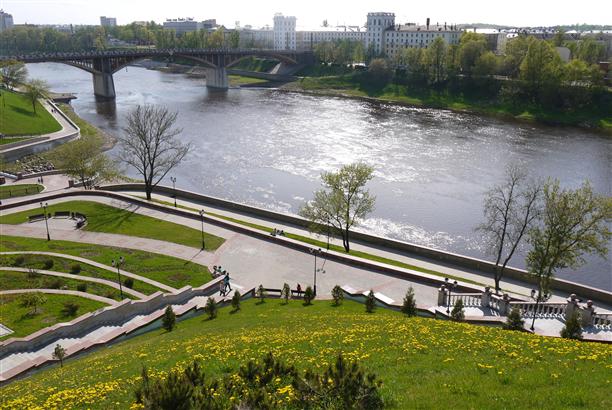 По Западной Двине курсирует кораблик - от площади Победы до парка Мазурино, туда и обратно (плывёт 30 минут, билет в одну сторону стоит 100 рублей).
