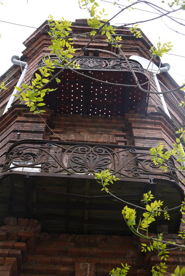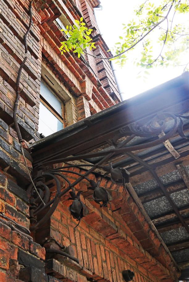 Улица Димитрова, 21. Дом старый, тёмно-красный, а "ухо", похоже, сталинского периода и вот-вот отпадёт :)