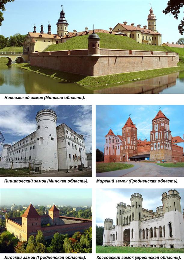 В Белоруссии существовало около 100 замков. В хорошем состоянии на сегодняшний  день находятся только пять: Мирский, Лидский, Несвижский, Коссовский и Пищаловский.