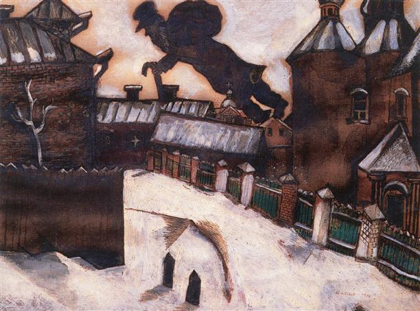 Картина Марка Шагала "Над Витебском" (1914 год). Вот он правильный цвет старого города.