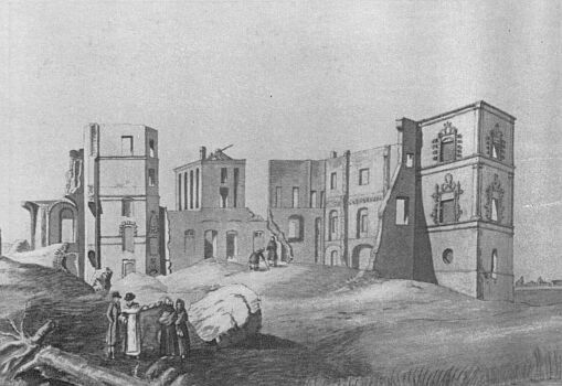 Окончательно замок был разрушен в середине XIX в., когда новый хозяин (тайный советник Семёнов) распродал его на кирпич. Часть замкового кирпича пошла на строительство Свято-Алексеевской церкви в Смолянах. Но на нём, очевидно, было проклятье...