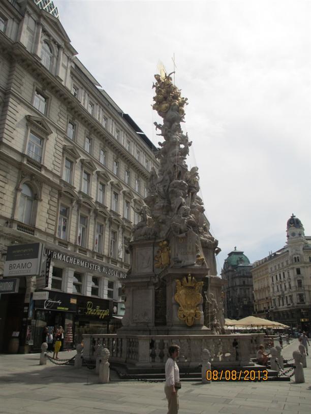 Под руководством неутомимой Джульетты, пытающейся за короткий промежуток времени максимально нагрузить нас знаниями про свой город, мы прогуливаемся по одной из самых известных улиц Вены — Грабен, в центре которой располагается чумная колонна (или колонна Святой Троицы), построенная в 17 веке, в честь избавления Вены от эпидемии, унесшей тысячи жизней.