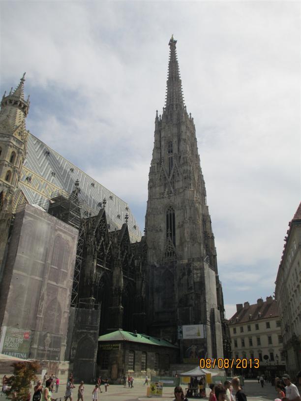 Затем выходим к прекрасному образцу готической архитектуры средних веков — собору Святого Стефана, он считается символом австрийской столицы, и очень точно передаёт ощущение от всего города — образец прекрасного вкуса с долей имперского величия и кусочком какой-то магической нереалистичности. Когда смотришь на этот собор, не верится, что такие грандиозные постройки люди совершали, обходясь без современного оборудования и технологий, по словам Джульетты, строительство храма велось более двух веков, и окончательный вид он приобрёл к 1511 году.