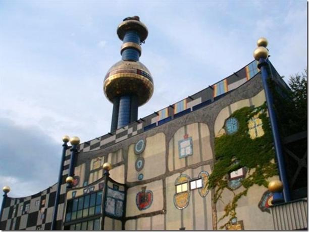 В столицу Австрии приезжаем с утра, уже в пригороде встречается первая достопримечательность — мусороперерабатывающий завод Шпиттелау, построенный архитектором Фриденсрайхом Хундертвассером, известным своим своеобразным, неповторимым стилем. Действительно завод выглядит очень необычно, кажется, что он попал в нашу реальность либо из будущего, либо из параллельного мира, существующего в стиле стим/дизель — панк.
