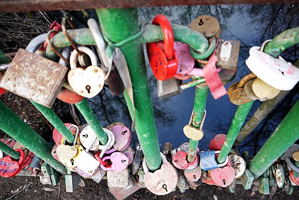 Мышегский подвесной мост традиционно увешан замками "вечной любви и светлой муки".