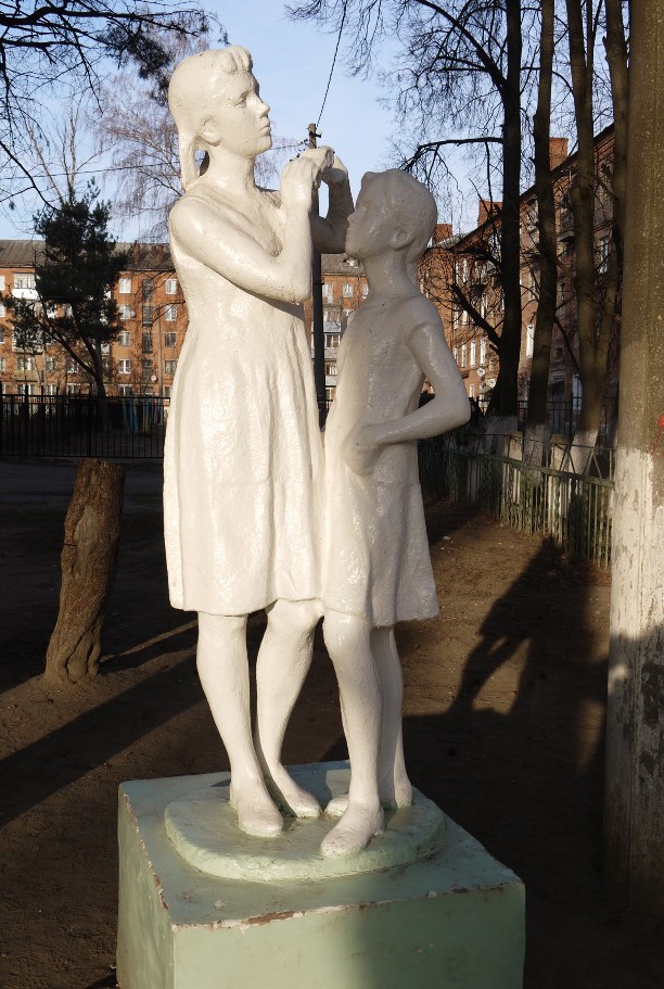 Письмо замуровано недалеко от Дворца культуры "Химик", у стен которого неплохо сохранились две интеллигентные скульптуры времён СССР.