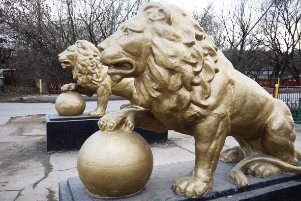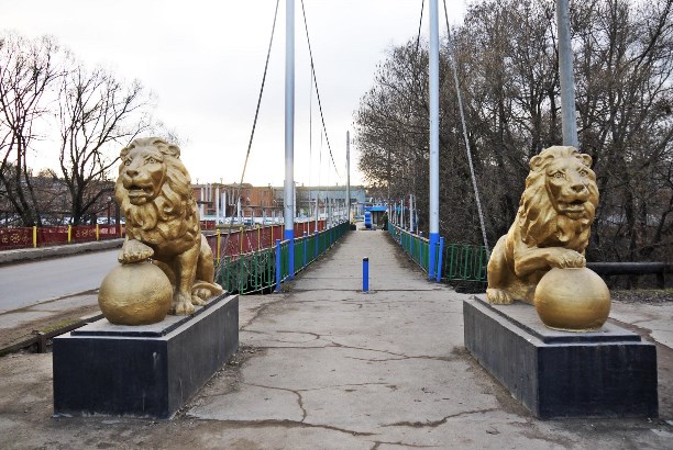 Мост через реку с классным названием - Мышега - охраняют львы.