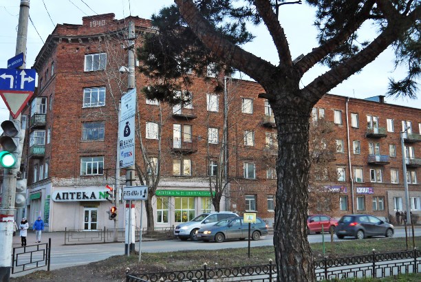 А этот бастион 1940 года рождения стоит на пересечении улиц Мира и Ленина. Их там таких два! Выглядят сурово и неприступно.