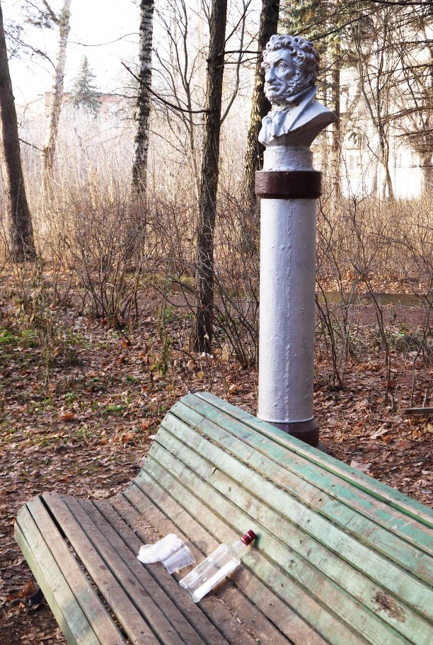 Ещё одна достопримечательность "Жалки" - аллея писателей. Место, где любой алексинец (прямо средь белого дня!) может прийти и поцитировать классиков с бутылкой-другой пшеничного вина.