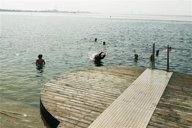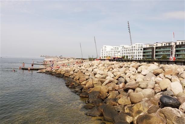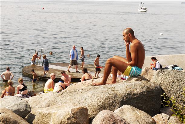 Еще одна достопримечательность района - пляж с круглыми пирсами. Вода в Эрессунском проливе заметно теплее, чем в норвежских фьордах – около +19. Поэтому с радостью искупались.