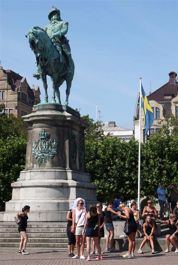 У памятника шведскому королю (одному из многочисленных Карлов, точнее Карлу десятому) застали девичник.