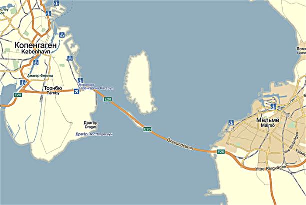 - Проживая в столице Дании Копенгагене (хотя бы три дня, как мы), неплохо знать, что всего полчаса на электричке, и ты можешь оказаться в Швеции! Ходит поезд до соседнего Мальмё очень часто – каждые 20 минут. Билет туда-обратно стоит 86 датских крон, а для студентов - 56 крон (умножаем на 5, получатся рубли). Самое интересное, что дорога идет по 8-километровому Эрессунскому мосту – тому самому, который со стороны Швеции вполне себе обычный, а за 4 километра до Дании «ныряет» под воду :)