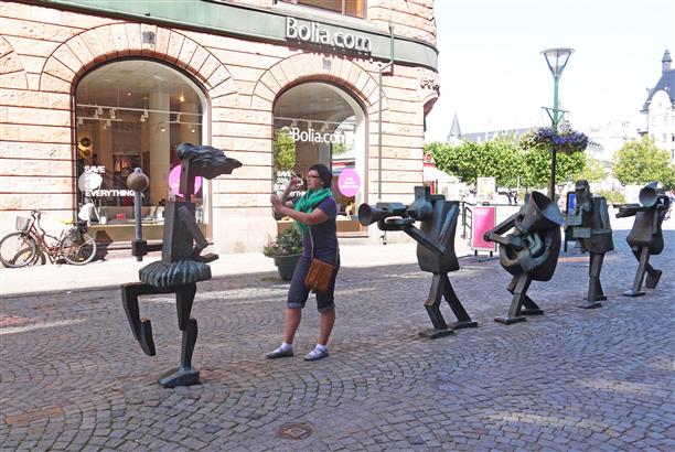 По всем нашим телеканалам показывая Мальмё, показывали в основном его единственную скульптуру «оптимист-оркестр». Вот этих музыкантов :) Кроме второго слева...