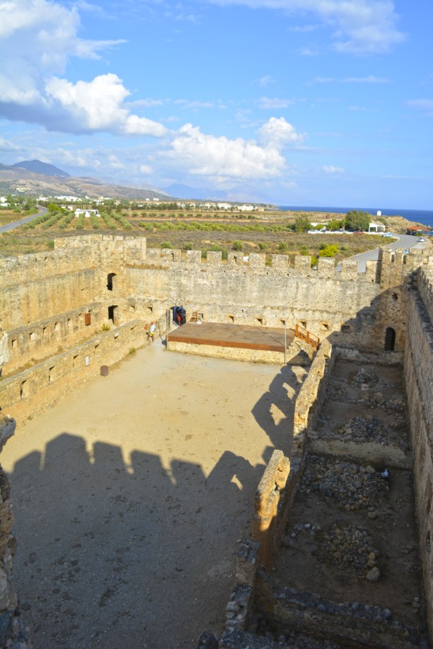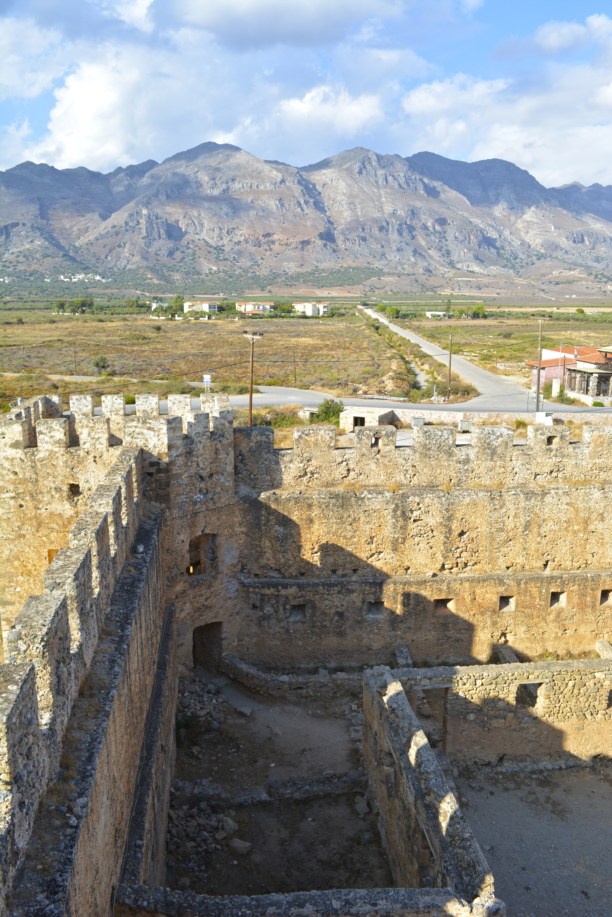 Это самый лучший по сохранности замок на Крите, хотя построен еще в 14 веке. Венецианцы воздвигли его для защиты от нападений пиратов и назвали в честь святого Никиты, но местные окрестили выросший замок Франгокастелло, что буквально значит — замок франков (чужеземцев), так название и прижилось. Замок почти не использовался и только в 18 веке в замке сдались туркам известный критский мятежник Даскалояннис и 70 его соратников. Даскалоянниса пытали в Франгокастелло, а затем казнили в Ираклионе. Одна из башен-смотровая, можно подняться на 3 яруса наверх. На разных ярусах расположена экспозиция национальной Критской культуры: ремесла и изображения сцен быта.