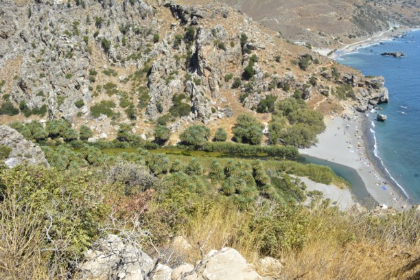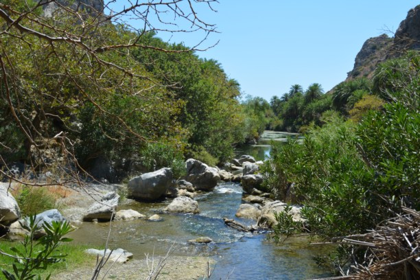 Но пора двигаться дальше. Следующим местом, куда мы хотели добраться – пальмовая бухта. Пляж Превели, пляж фиников- у этого места несколько названий, но это все совершенно не важно. Место это - природный памятник. Пресная река Мегалопотамо (Большая река-дословно), спускающаяся с гор в Курталиотском ущелье, в этом месте впадает в море, образуя косу, с одной стороны которой теплое Средиземное море, а с другой ледяные пресные воды горной реки.
