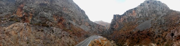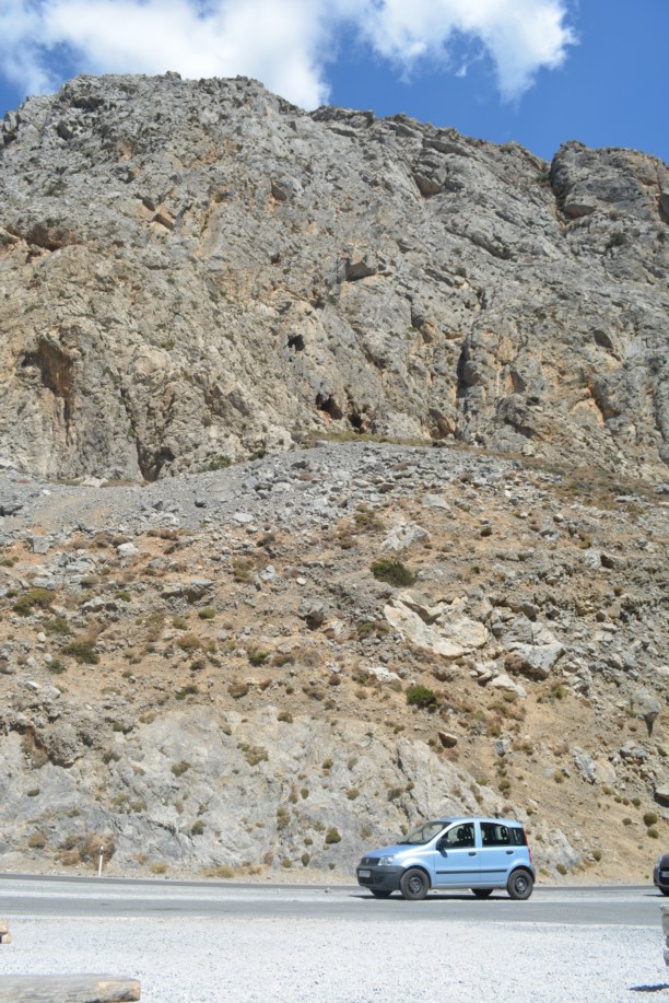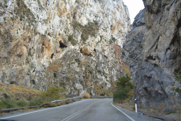 Яркое солнце было полностью отрезано от этого ущелья высокими стенами. Двухкилометровые горы нависали и прижимались к асфальту, норовя выдавить цивилизацию оттуда. Стояла невероятная тишина, даже не было слышно движения ветра, хотя ветер дул очень сильный! Это невероятное величие!  Огромные скалы, вырванные из гор, лежали у подножья, и по их форме можно было найти то место, откуда тысячи лет назад они упали. А каменная арка в одной из «стен» вообще осталась для меня загадкой. Уж не Зевс ли руку приложил?...