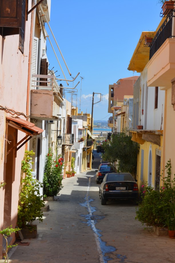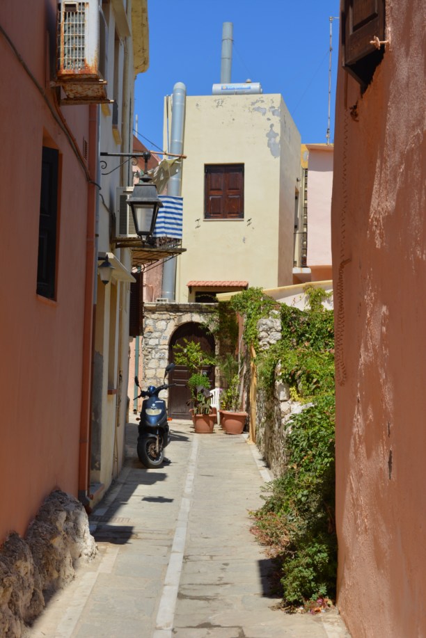 Как и везде на Крите-тут были маленькие узкие улочки, маленькие машины и юркие мотоциклы. Не обошлось и без артефактов, как этот железный старик).