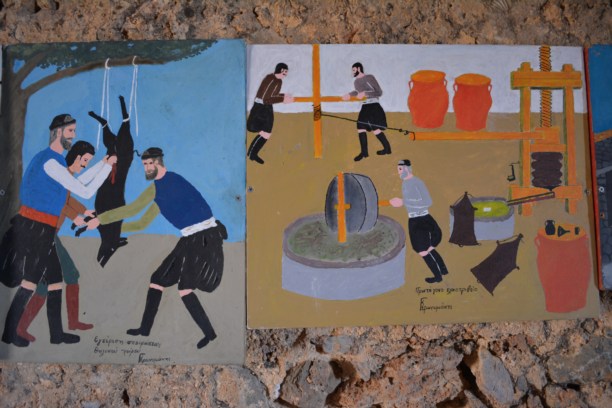Встречались крошечные деревни, название которых даже не было на картах. Домики липли к склонам, поднимаясь уступами в скалах. На узких извилистых улицах совершенно не реально протиснуться человеку и машине, не то, чтобы разъехаться двум машинам. В одной из таких деревушек мы купили оливкового масла и мыла, которое производит одна из семей, живущих в этой деревне. Куда дешевле и качественнее, чем в туристических центрах. А еще, по таким дорогам постоянно находишься в напряжении, за рулем точно не расслабишься. Поэтому по-настоящему обрадовались, когда, наконец, достигли Франгокастелло.