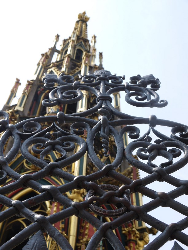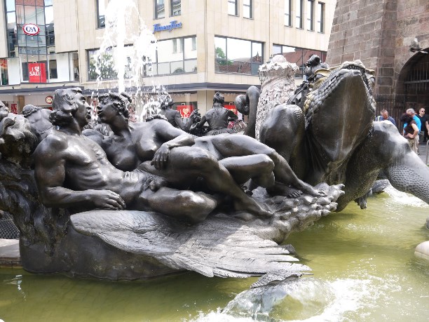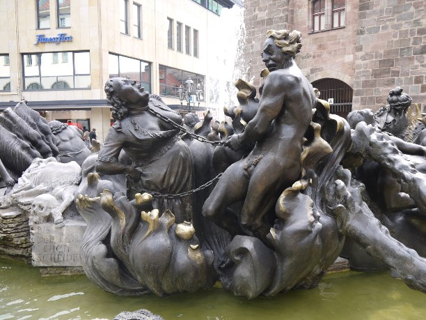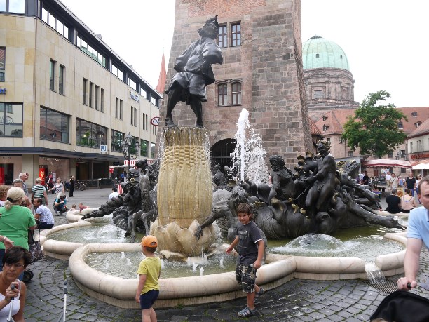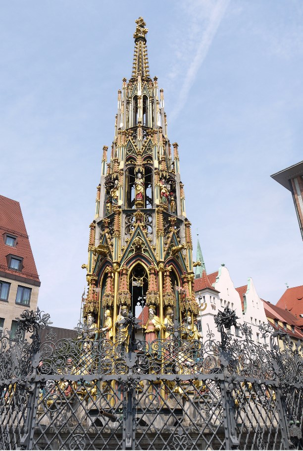В средние века на этой самой площади не только кутили и веселились, здесь же стоял позорный столб, к которому привязывали провинившихся ростовщиков и прибивали гвоздем за ухо неверных жён. Позорный столб не сохранился, зато сохранилось другое интересное сооружение - «Красивый колодец» XIV века (или как его ещё называют «Прекрасный фонтан»). Изначально этой роскошной 19-метровой конструкцией планировали украсить верхушку Фрауэнкирхе, но из-за большого веса её не смогли туда поднять, и она стала фонтаном.