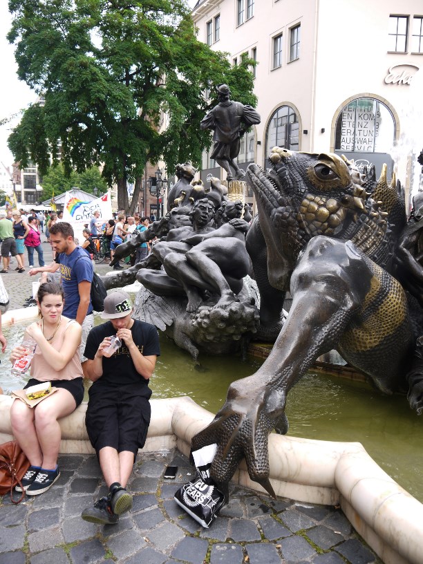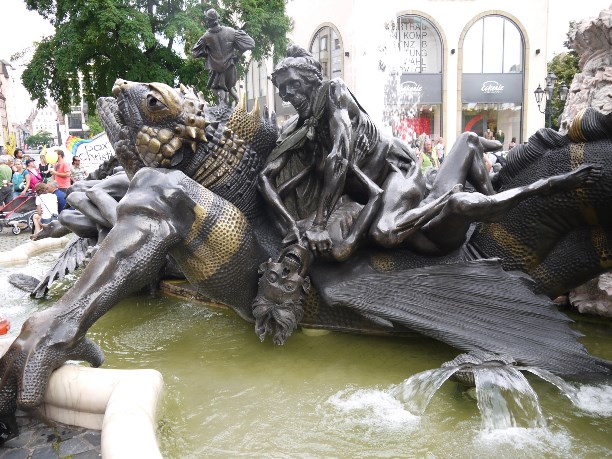 На лапе ящерицы можно увидеть надпись «01.07.1977» - дата принятия нового закона о разводах в Германии. Фонтан стоит на площади с 1982 года и символизирует свободу расторжения браков.