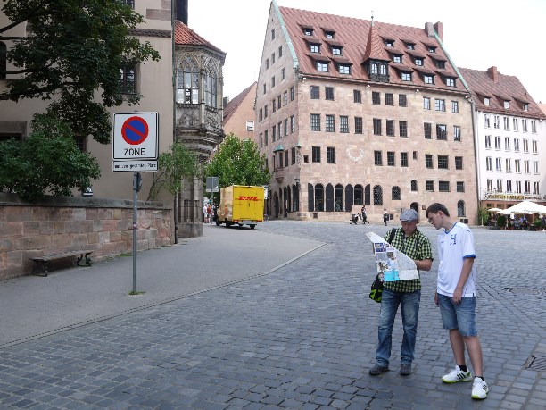 Nuremberg Info (информационный туристический центр) расположен напротив вокзала на Königstraße 93. Не лишним будет заглянуть туда и прихватить путеводитель с картой (что приятно, есть на русском языке). Оттуда вы, например, узнаете, что птица Норис (птица счастья и удачи) - символ Нюрнберга и стоит поискать её на улицах города. :))) Мы вот нашли. И даже не одну.