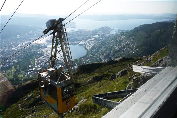 Про вторую вершину с канаткой - Ульирикен - в будке информации нам сказали "It is very difficult!" и что добраться туда своим ходом нам не судьба! Но мы были настойчивы :))) В общем так: от остановки "Exebition" (никакой ошибки, так там было написано) на автобусах №2, 3, 12 до остановки "Haukeland Hospital", а там держаться левее и идти по указателям на "Ulriksbanen". Оно того стоит! С Флёйеном вообще не сравнимо: Ульирикен выше, живописнее и не так густо населен туристами.