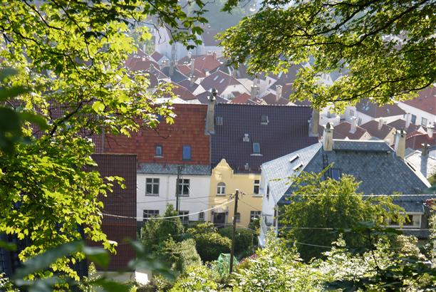 Городу удалось сохранить целый квартал с атмосферой Ганзы (купеческого торгового союза XIV века). 60 разноцветных деревянных домиков на берегу фьорда находятся под защитой ЮНЕСКО.