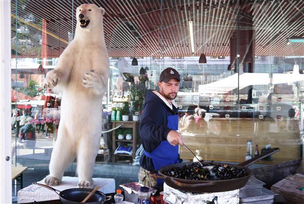 Еще одна достопримечательность Бергена - Рыбный рынок. Он как большой ресторан под открытым небом, здесь готовят все – от норвежского лосося до китового мяса.