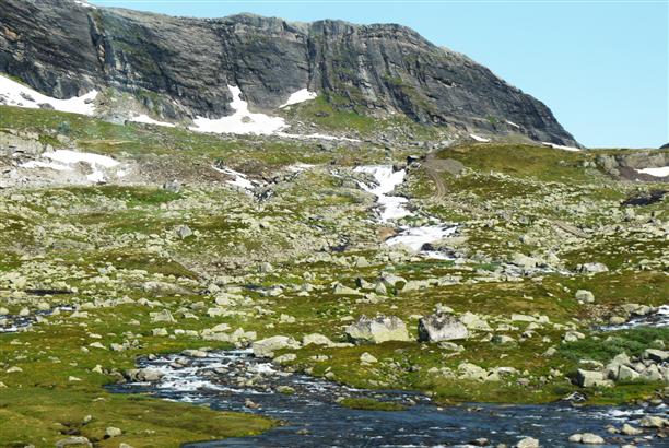 На одной из остановок электронное табло выдало отметку  в 1222 метра над уровнем моря. Так называемая «крыша Норвегии» - горное плато Хардангервидда, станция Финзе. По календарю – лето, а за окном – почти зима.