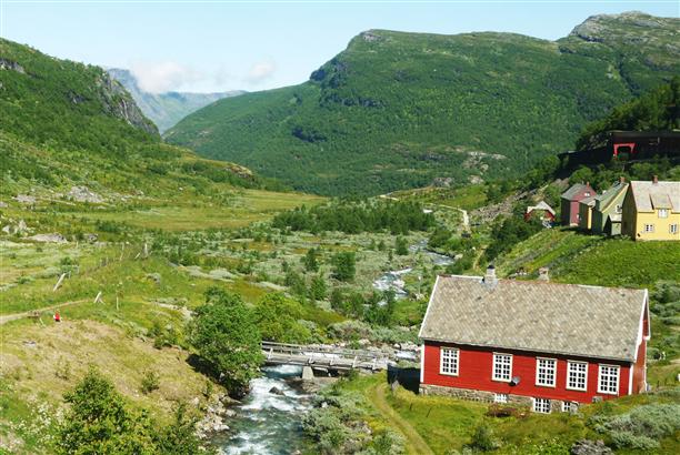 Из Осло в Берген дешевле и интересней добираться на поезде. Самый первый отправляется в 6.43, в дороге он около семи часов, цена билета 1555 рублей (если забронировать за месяц до поездки). Надо сказать, впервые в жизни я не спала под стук колес. Снежные вершины, водопады, бурлящие за окном реки, маленькие деревянные домики на изумрудных склонах, озера, в которых тонут облака…  Пейзажи  менялись все семь часов и кричали мне: «Не спать!».