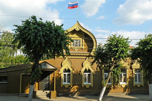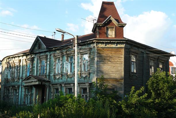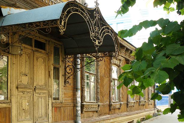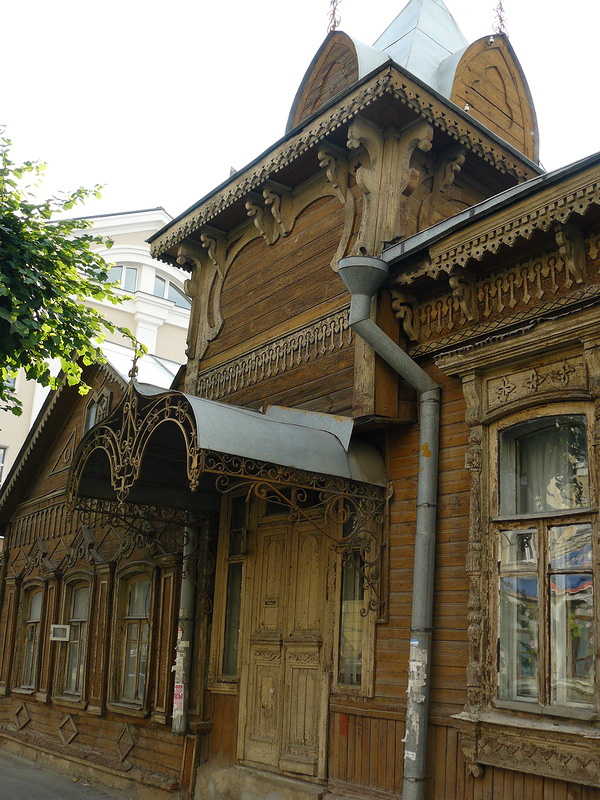 А этот деревянный купеческий дом, весь резной, с башенкой на крыше и ажурным кованым крыльцом нашелся на улице Вознесенской. Причем, дом оказался именным. С 1850 по 1890 год в нем жил русский морской офицер и покоритель Аляски Лаврентий Загоскин :)